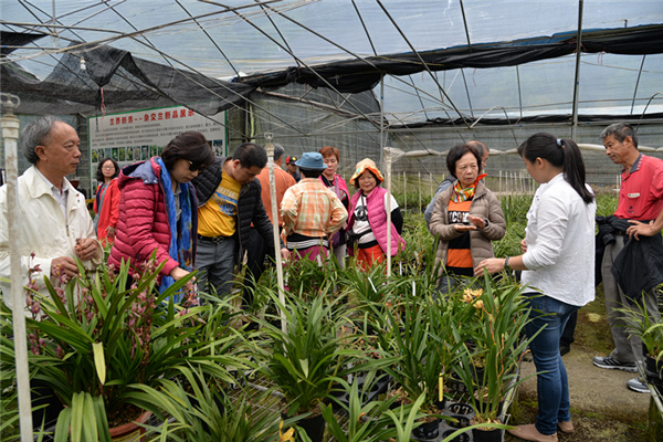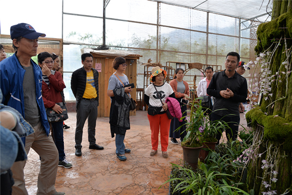 台湾互动国际有机农业学会一行参观清龙兰园石斛兰花展示厅。